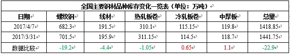 縱觀全國(guó)市場(chǎng),本期全國(guó)35個(gè)主要市場(chǎng)螺紋鋼庫(kù)存量為682.3萬(wàn)噸,減少19.2萬(wàn)噸,降幅為2.74%;線材庫(kù)存量為191.5萬(wàn)噸,減少4.4萬(wàn)噸,降幅為2.25%。而從全國(guó)線材、螺紋鋼、熱軋板卷、冷軋板卷、中厚板五大品種庫(kù)存總量來(lái)看,本期全國(guó)綜合庫(kù)存總量為1418.85萬(wàn)噸,較前一周減少22.9萬(wàn)噸,降幅為1.59%。總體來(lái)看,本周全國(guó)鋼材市場(chǎng)庫(kù)存連續(xù)第七周出現(xiàn)下降,目前的庫(kù)存水平較去年同期增加34.37%。目前國(guó)內(nèi)建筑鋼材需求尚可,但板材需求持續(xù)低迷,使得國(guó)內(nèi)鋼材市場(chǎng)庫(kù)存在旺季消化速度不及預(yù)期,市場(chǎng)供應(yīng)壓力有所加大。